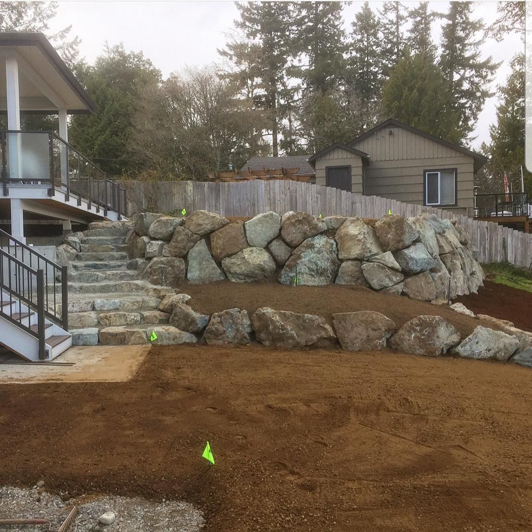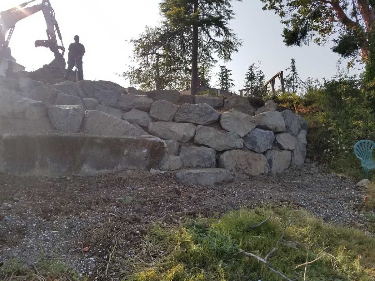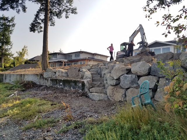 Using the strongest materials and with over 25 years of experience constructing all kinds of retaining walls throughout Vancouver Island, our hardscapers and stone masons are ready to build a stone wall, wood wall, brick wall, concrete wall, in any fashion you wish, and however strong needed, all to the latest BC building codes and bylaws. To get started on your retaining wall construction in Victoria BC today, contact Larix Landscape by dialing (250) 590-9508. From Cordova Bay to Colwood and across Saanich and lower Vancouver Island, we're the team that get's retaining wall systems constructed on time with friendly, efficient workers.